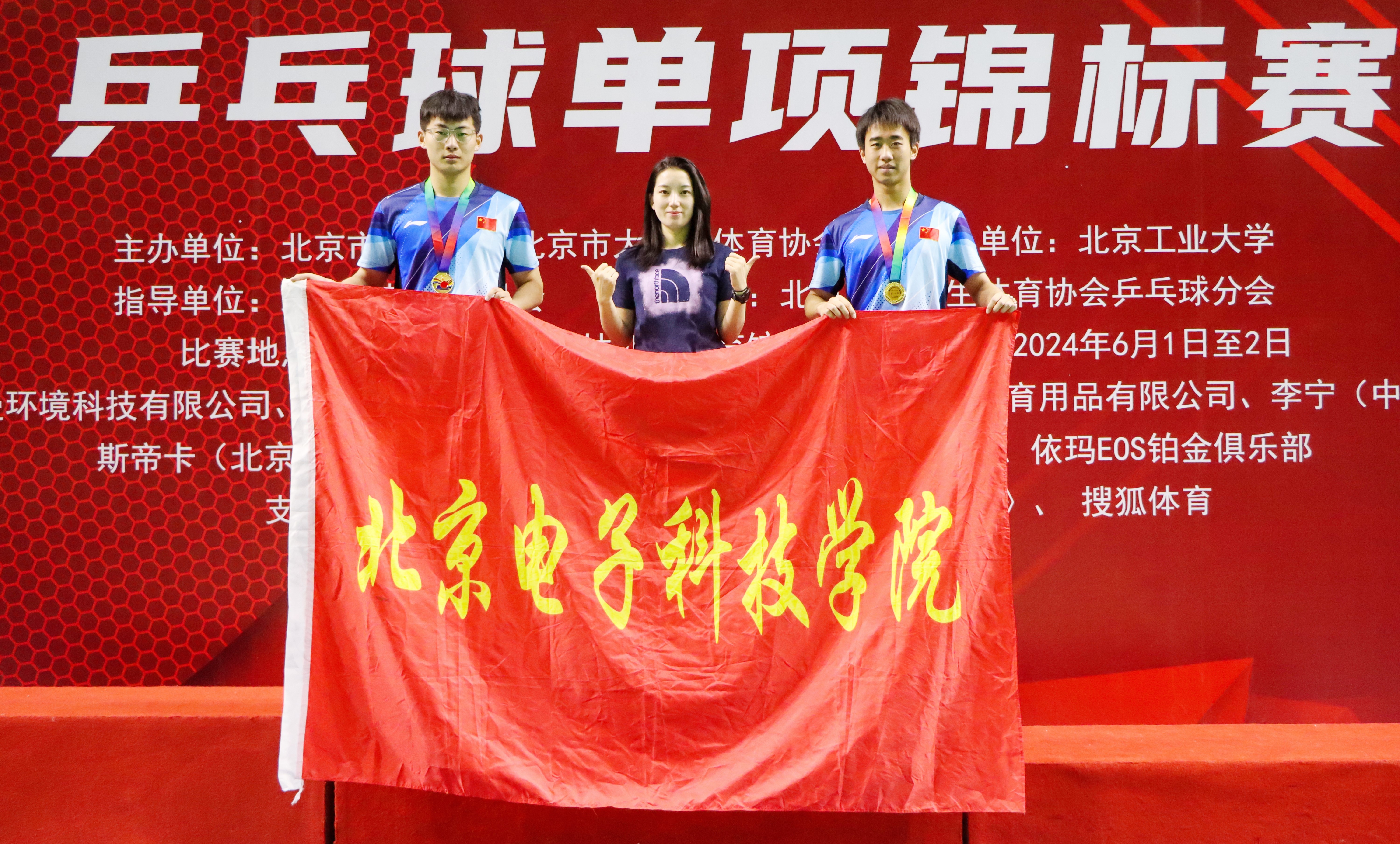 2024年6月1日至6月2日,首都高校乒乓球单项锦标赛在北京工业大学奥林匹克体育馆举办。经过激烈角逐,我院乒乓球队在丙组取得傲人成绩。在校队教练孙老师的带领下,居里、黄子宽组合斩获男子双打冠军,打破了他们自身连续两年的亚军记录;林奎靖、王盈每组合超越了此前的混合双打第八名成绩,一跃获得亚军;薛昕怡、黄椿淇组合也突破自我,在前两年止步16强的遗憾下,一举获得混合双打第七名的佳绩。