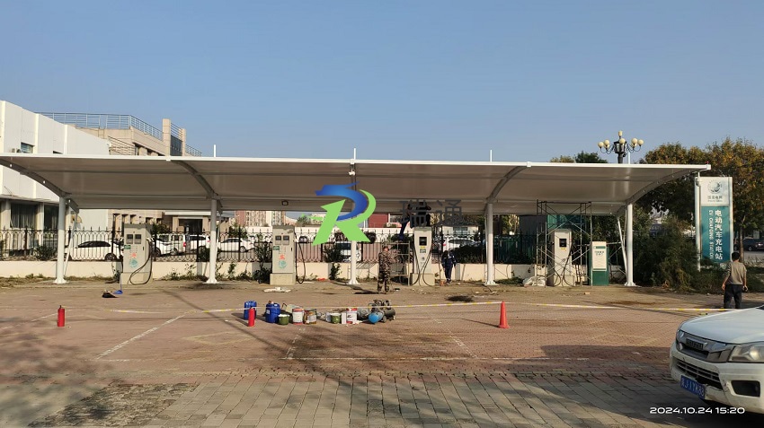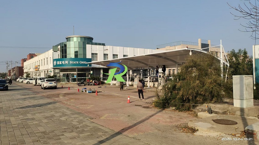 【工程案例名称】:河北黄骅国家电网充电桩膜结构车棚工程项目